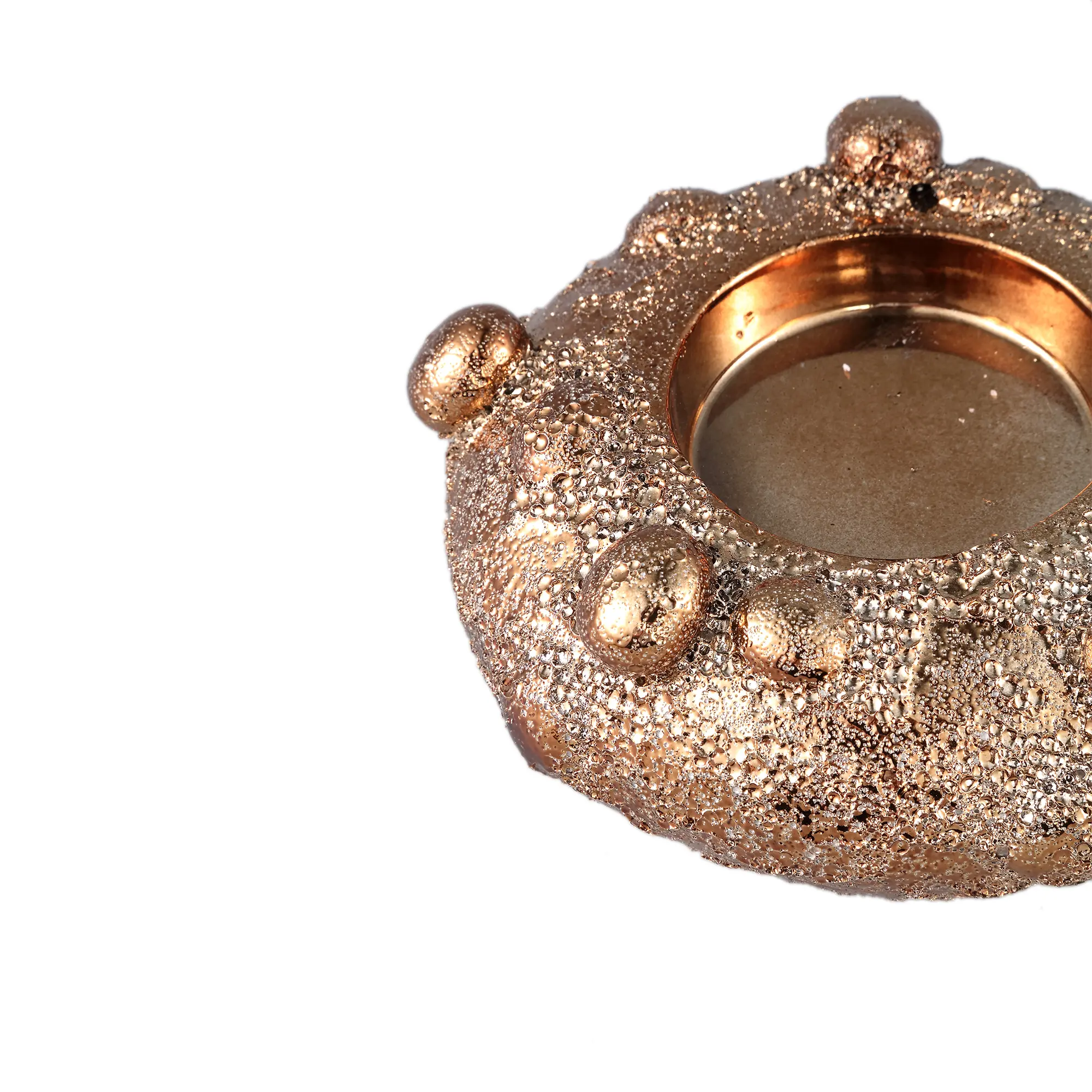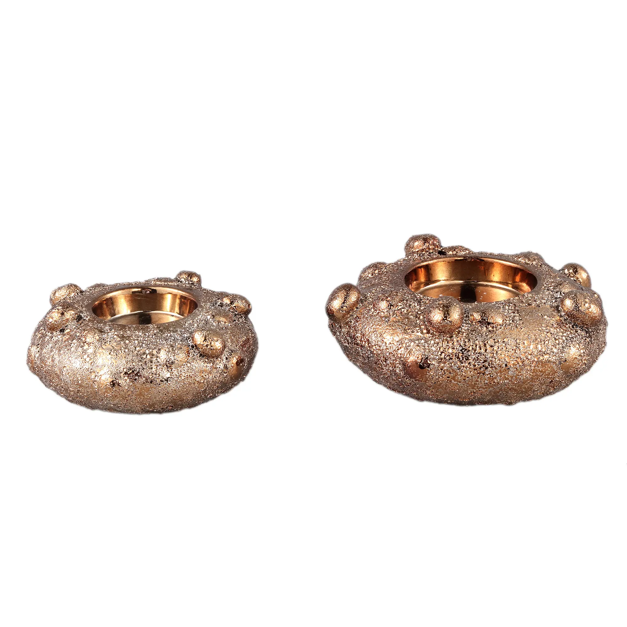 A PTMD Giulia bronz színű, alacsony, kerek kerámia gyertyatartó egy különleges és stílusos lakberendezési kiegészítő, amely elegáns megjelenésével és egyedi textúrájával emeli az enteriőr hangulatát.
