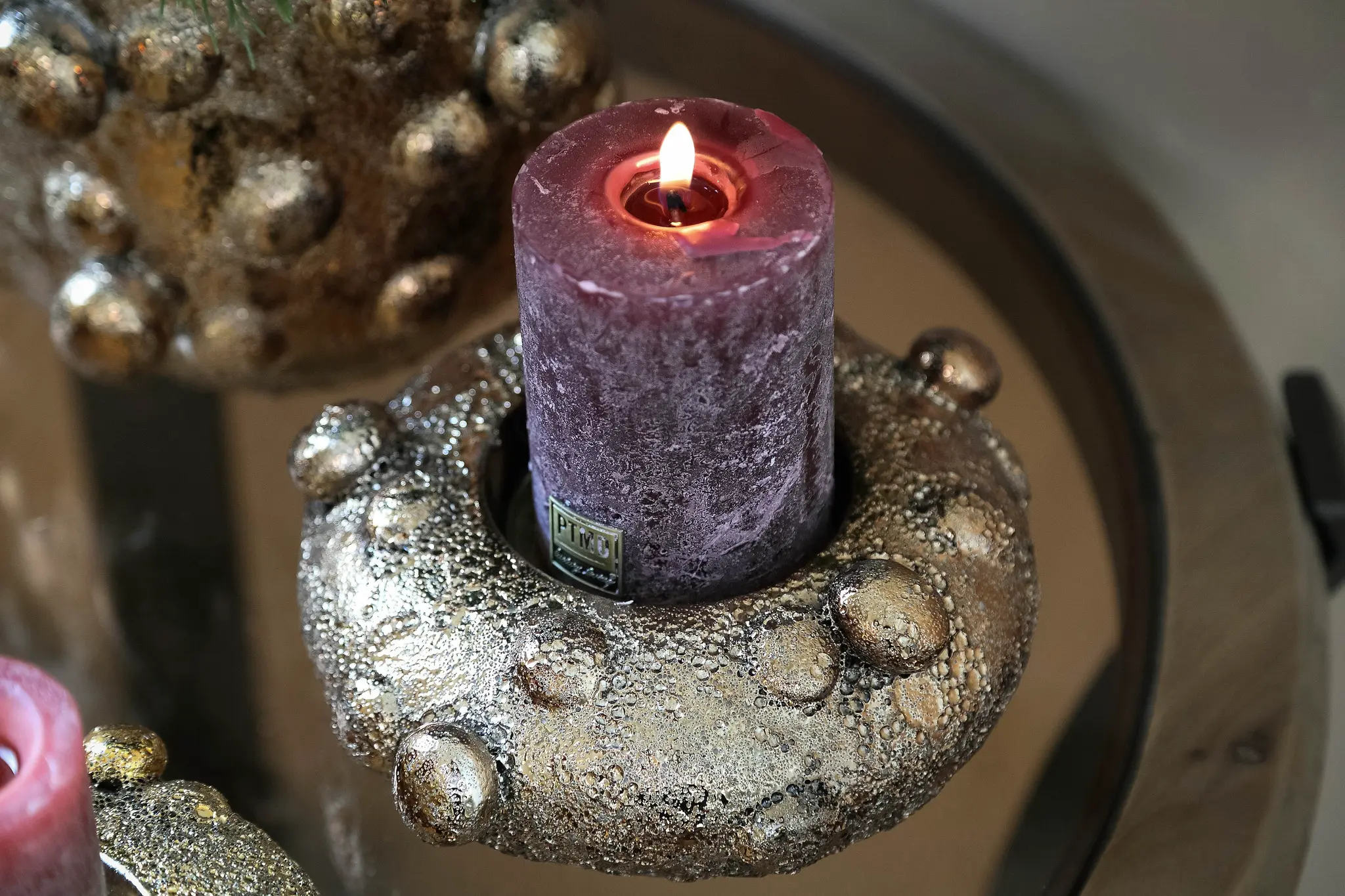 A PTMD Giulia bronz színű, alacsony, kerek kerámia gyertyatartó egy különleges és stílusos lakberendezési kiegészítő, amely elegáns megjelenésével és egyedi textúrájával emeli az enteriőr hangulatát. A gyertyatartó rücskös felülete természetes, kézzel készített hatást kelt, amely tökéletesen illeszkedik a modern, rusztikus vagy akár vintage stílusú otthonokba is.