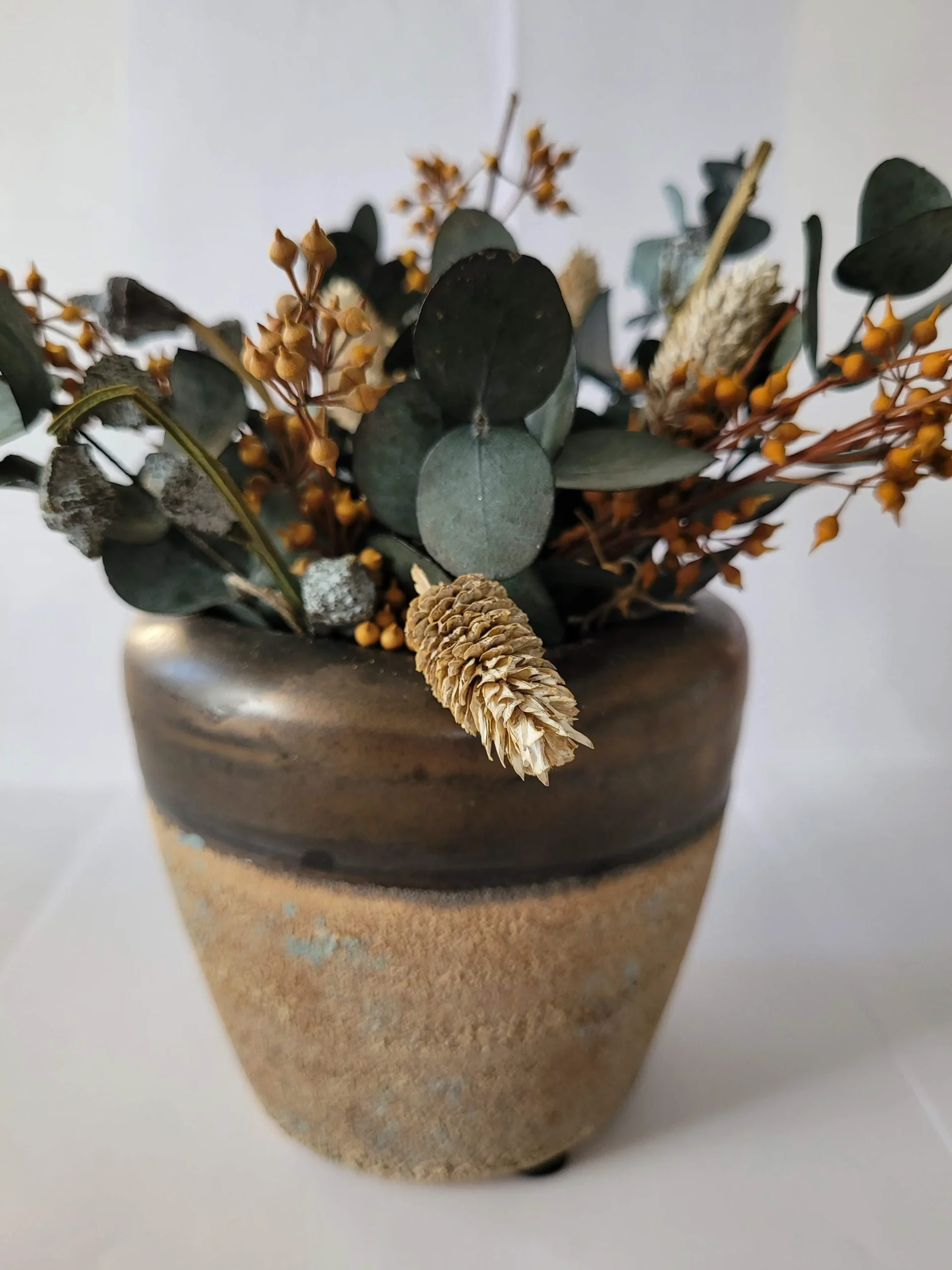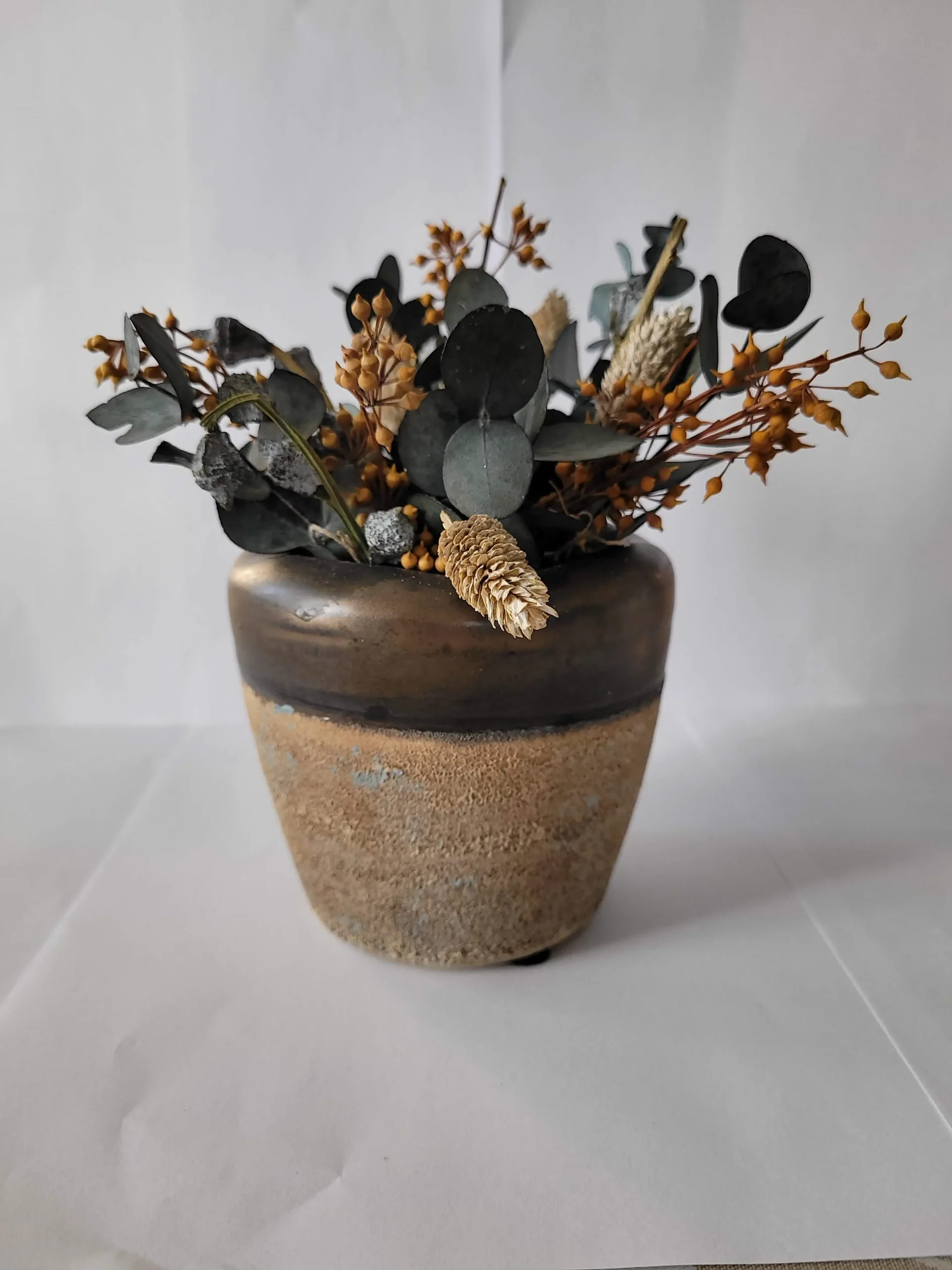 Egyszerre természetes és a bronz szegélynek köszönhetően elegáns is ez a picike, kézzel készített, prémium kaspó. Ajánljuk élő- , szárított- és művirághoz egyaránt!