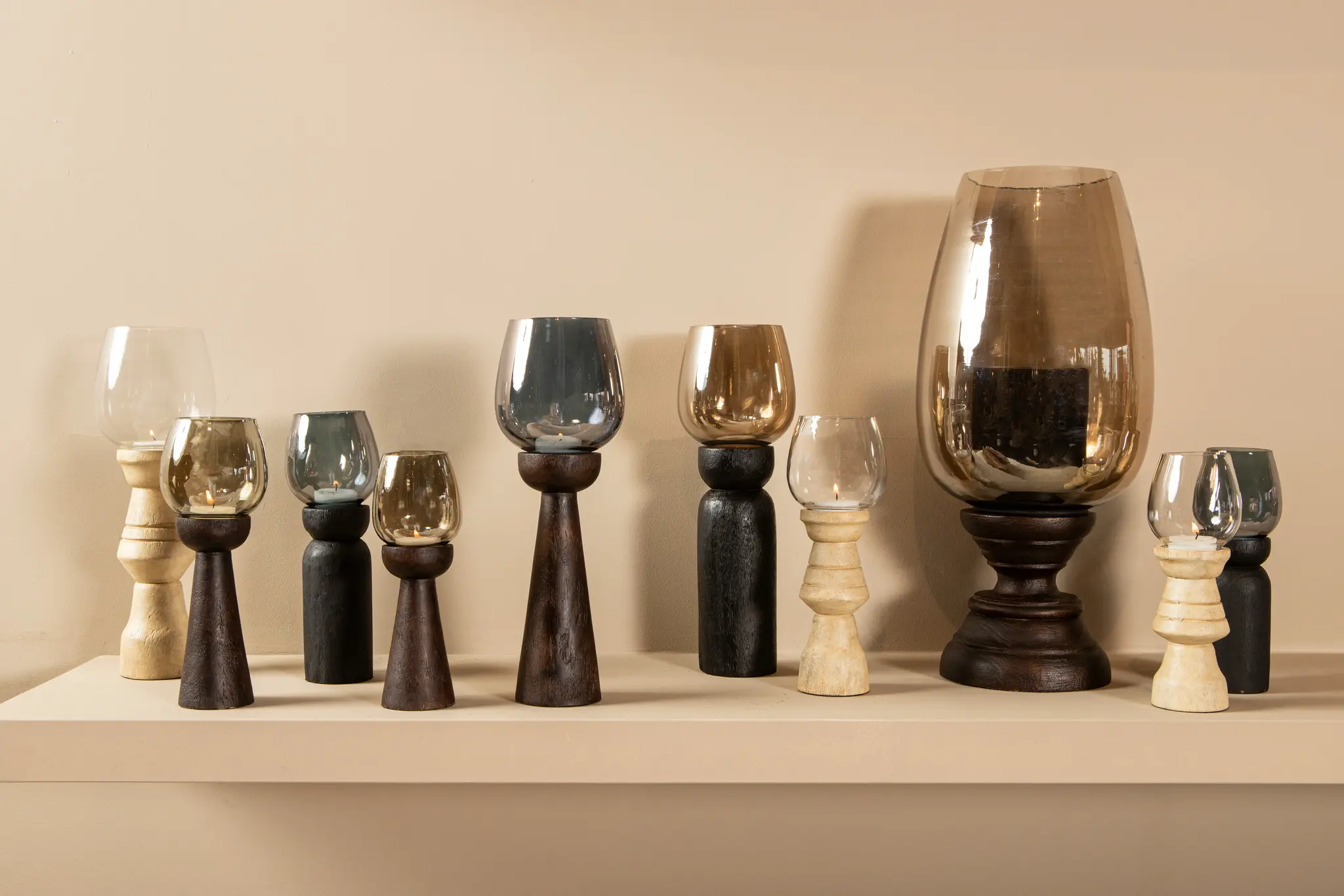 A PTMD Qez viharlámpás egy exkluzív, kézzel készült lakberendezési kiegészítő, amely ötvözi a természetes anyagok melegségét és a modern dizájn letisztultságát. A viharlámpás anyaga mangófa és üveg.