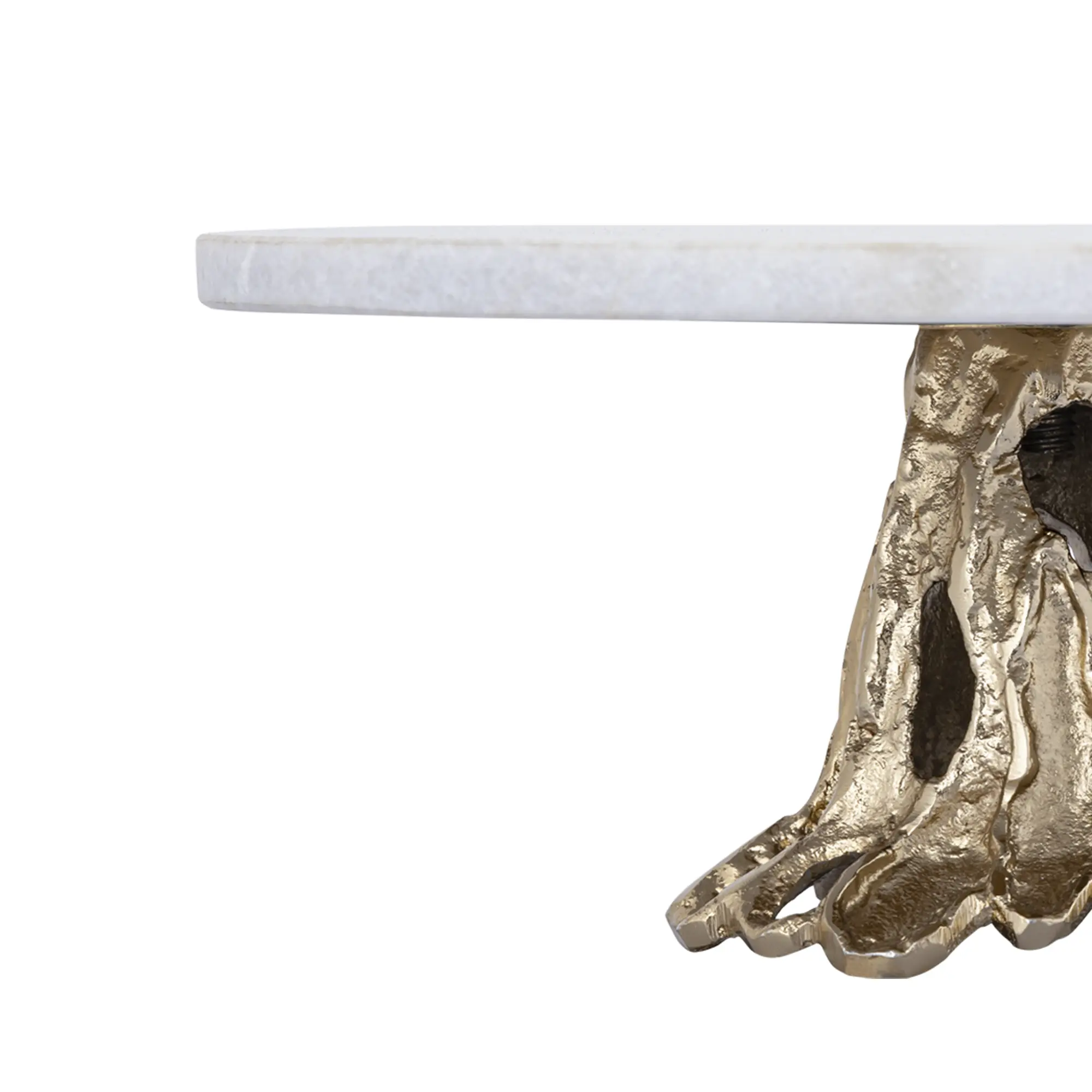 A Wayson White Marble tortatál különlegessége a kézzel megmunkált márvány lapban rejlik, amely minden darabot egyedivé tesz. A márvány természetes erezete és hűvös, fényes felülete nemcsak vizuálisan vonzó, hanem praktikus is, mivel könnyen tisztítható és rendkívül tartós. A pezsgő színű alumínium talp különleges kontrasztot alkot a márvány világos tónusaival, ami még inkább kiemeli a tál eleganciáját.