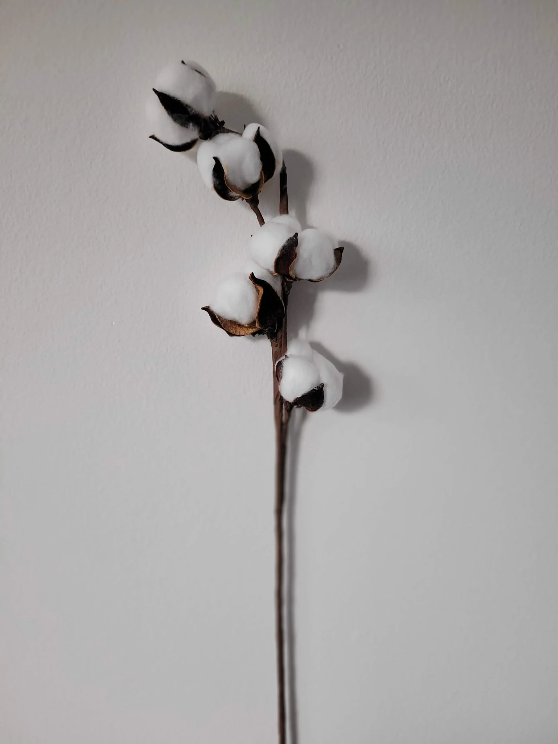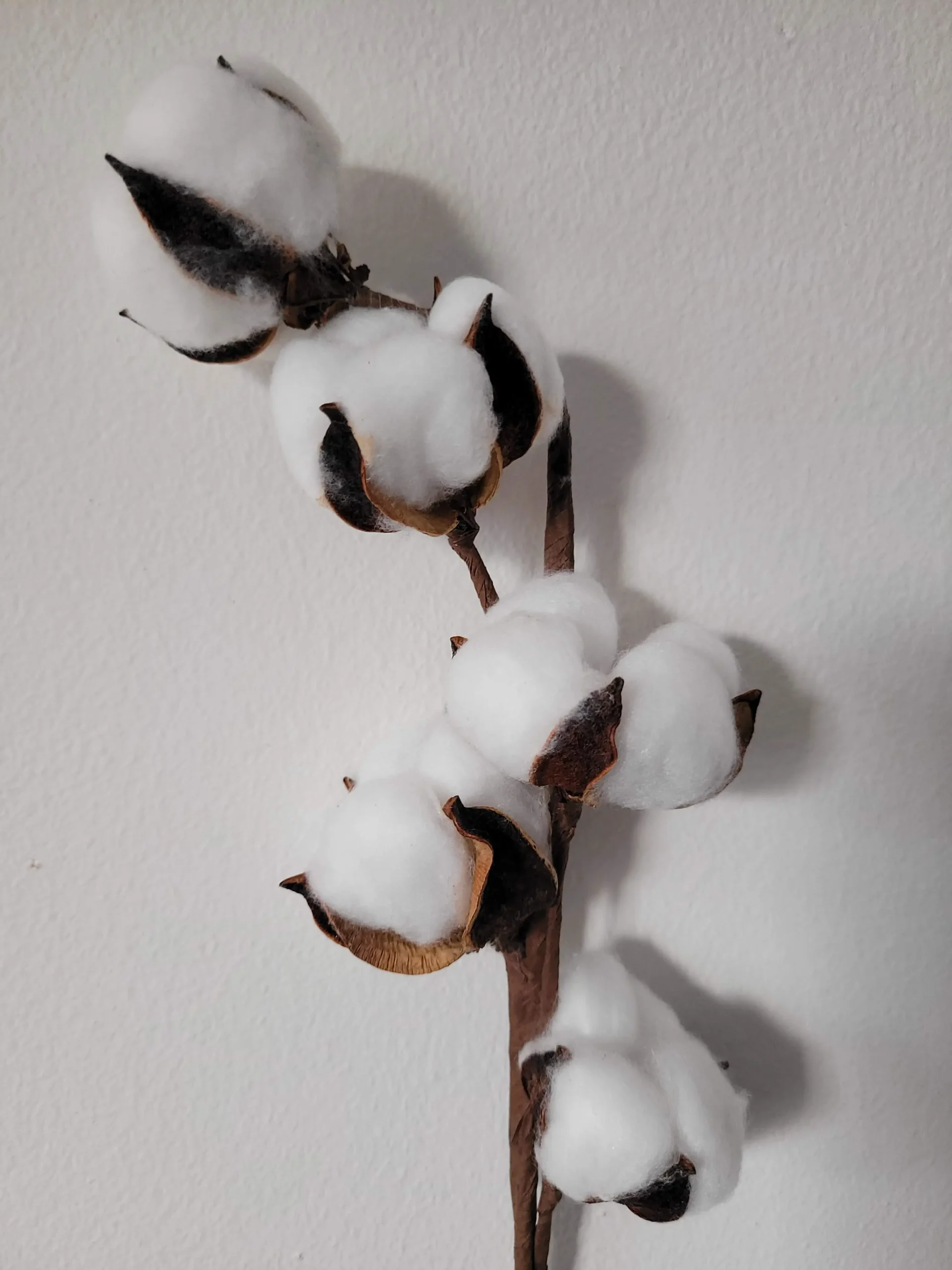 Valódi szárított gyapot termés drótszárra rögzítve. Nagyon jól mutat önmagában is, de akár más szárított növényekkel társítva is. Egy száron 5 db termés található.
